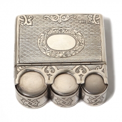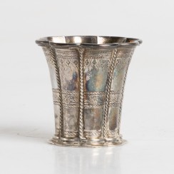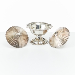 172494 - Солонка, Российская империя (Россия), 59 гр, 84 пр, высота 5 см, диаметр верха 7,8 см 389959 - Солонка и перечница в виде зонтиков, 52 гр, 925 пр, диаметр 6,8 см