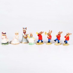 334943 - Коллекция из четырех статуэток зайцев-музыкантов, Англия, Royal Doulton 215536 - Заяц, высота 9 см, основание 4,2 х 4,4 см, RDL_DB149 364802 - Зайчиха в чепце с корзиной, высота 11,5 см, основание 6,8 х 5,8 см, RDL_DB19 393261 - Мышь в шляпке с корзиной, высота 10 см, основание 5,5 х 5,8 см, RDL_DBH5 363974 - Мышт в шляпке с букетом, высота 10 см, основание 9 х 6 см, RDL_DBH1