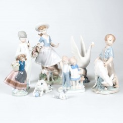 341679 - Девочка с корзиной и ягненком, высота 11 см, основание 9 см, Hum_361