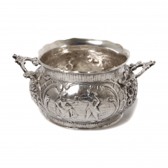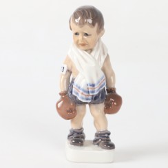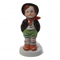 304462 - Мальчик с поросенком в корзине и зонтом, высота 14,2 см, основание 6,2 см, Hum_198/1