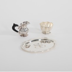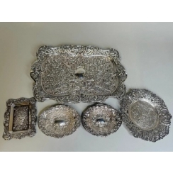 184087 - Поднос, 327 гр, 925 пр, максимальные размеры 30,5 х 20,5 х 2,7 см 357025 - Ваза, 212 гр, 925 пр, диаметр 16 см, высота 1,7 см 290834 - Ваза, 38 гр, 915 пр, 11 х 8,3 х 0,7 см 399288 - Ваза, 29 гр, 925 пр, 11,7 х 9 х 1,8 см 374457 - Ваза, 27 гр, 925 пр, 11,7 х 9 х 1,8 см