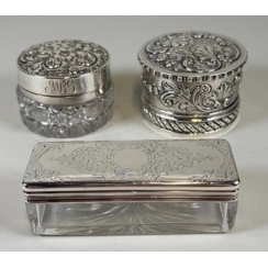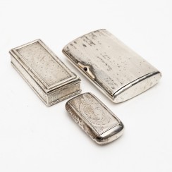 361041 - Серебряная коробка - визитница с золотой накладкой, общий вес 116 гр, 830 пр, длина 9 см, ширина 5,8 см, толщина 2 см 301209 - Коробка - таблетница, Франция, 57 гр, длина 7,8 см, ширина 3,5 см, высота 2 см 266108 - Таблетница, 31 гр, 830 по, длина 5,7 см, ширина 3 см, высота 1,5 см