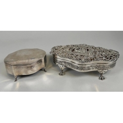 393141 - Шкатулка, 925 пр, длина 11,5 см, ширина 8,5 см, высота 5,8 см 327618 - Серебряная шкатулка с прорезной крышкой, 282 гр, 925 пр, длина 19 см, ширина 11,5 см, высота 6,2 см