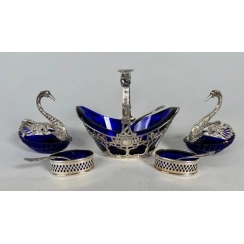 390851 - Серебряная прорезная ваза с кобальтовой вставкой. США 353921 - Солонки с кобальтовыми вставками, 2 шт, вес без стекла 16 гр, 925 пр, длина 4,5 см, ширина 2,8 см, высота 1,7 см 331244 - Солонки в виде лебедей, 2 шт. Серебро 800 пр, кобальтовое стекло. Высота 8 см, длина 7,8 см, ширина 4,5 см 376900 - Ложки для специй, 2 шт, 5,5 гр, 925 пр, 5,8 см 272872 - Ложка для специй, 4,5 гр, 925 пр, 6,5 см 357004 - Ложка для специй, 7 гр, 925 пр, лом
