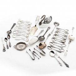 351755 - Коллекция серебряных изделий, около 133 гр 322901 - Ваза в виде лебедя 371527 - Небольшие чайные ложки (с кольцами), 6 шт, 80 гр, 830 пр, 11,3 см 317974 - Небольшие чайные ложки (с кольцами), 5 шт, 68 гр, 830 пр, 11,3 см 203866 - Серебряный половник для соусов. Норвегия 306462 - Серебряная сервировочная ложка. Норвегия 334842 - Сервировочная лопатка (с кольцами), 61 гр, 830 пр, 22 см 364540 - Серебряная сервировочная лопатка. Норвегия 347353 - Серебряная сервировочная лопатка. Финляндия, 1964 год 201443 - Щипцы для сахара, 11 гр, 830 пр, 7,2 см 311606 - Щипцы для сахара (с кольцами), 21 гр, 830 пр, 9,8 см 262696 - Серебряные щипцы для сахара. Норвегия 383527 - Обеденная ложка, 31 гр, 830 пр, лом 272171 - Небольшие чайные ложки, 6 шт, 63 гр, 830 пр, 11,5 см 397439 - Небольшие чайные ложки, 6 шт, 63 гр, 830 пр, 11,5 см 381455 - Серебряная сервировочная вилка. Норвегия 298542 - Сервировочная вилка, 21 гр, 813 пр, 17 см 358620 - Серебряная сервировочная вилка. Швеция, 1947 год 208385 - Чайная ложка, 13 гр, 830 пр, 12 см 231662 - Кофейная ложка, 8 гр, 830 пр, 10 см