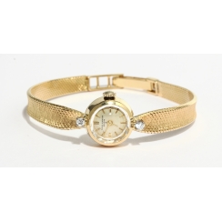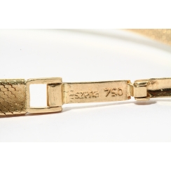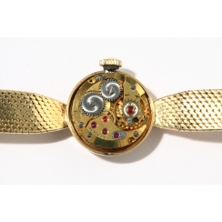 Швейцария, Baume & Mercier, 20 век.Диаметр корпуса - 1,6 см.Длина браслета - 18,2 см.Вес - 23,5 грамма. Золото 750 пробы.