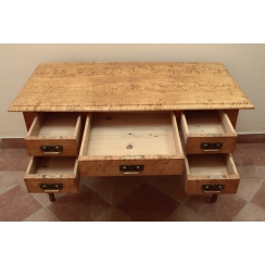 Письменный стол, массив, шпон шведской (карельской) берёзы, 19-20 век. Письменный стол. Массив дерева, шпон шведской (карельской) берёзы. Европа, конец 19 - начало 20 века. Высота - 74 см, длина/ширина столешницы: 118/59 см. Ключ. В очень хорошем состоянии.