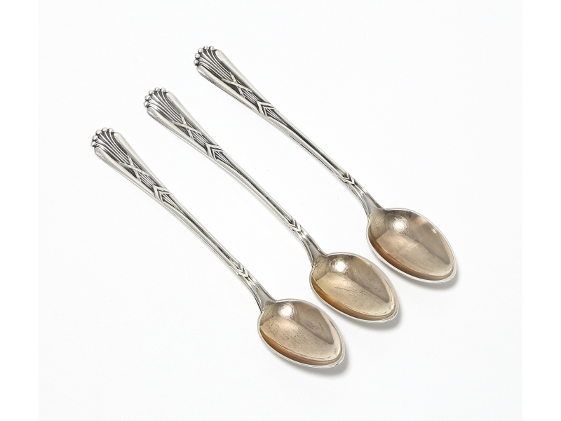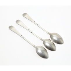 158684 - Кофейные ложки, 3 шт, Дания, 1904 г, 26 гр, 826 пр, 11,4 смСеребряные кофейные ложки, 3 шт. Дания, 1904 год. Длина - 11,4 см. Вес - 26 граммов серебра 826 пробы.