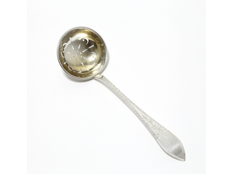 193213 - Ситечко-половник, Империя, Дания, 1904 г, 43 гр, 826 пр, 19 смСеребряное ситечко-половник, дизайн "Империя". Дания, 1904 год. Длина - 19 см Вес - 43 грамма серебра 826 пробы.