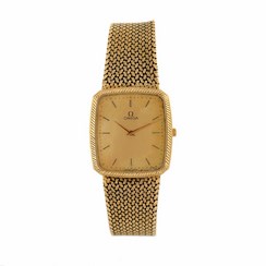 Мужские золотые наручные часы Omega, кварц. Размеры корпуса: 2,8 х 3,2 см. Длина браслета - 20 см. Общий вес - 70,1 грамма. Золото 750 пробы.