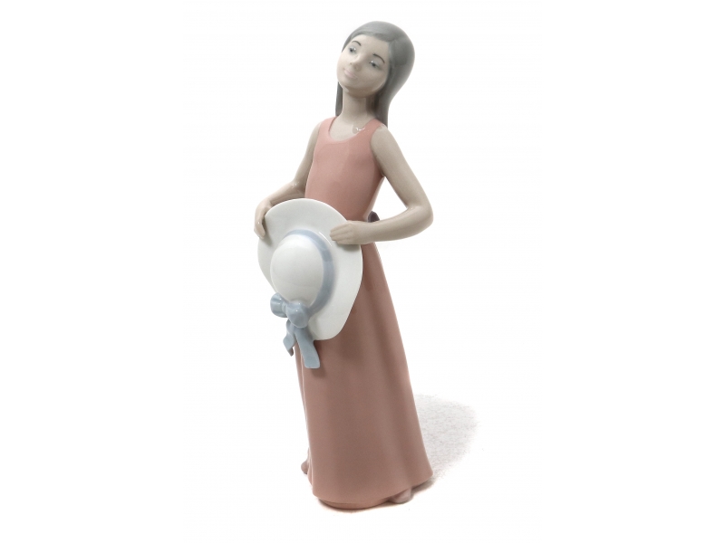 Фарфоровая фигура (статуэтка) "Девочка с соломенной шляпой". Ручная подглазурная роспись.