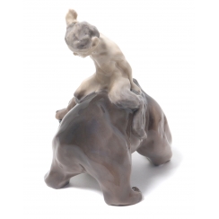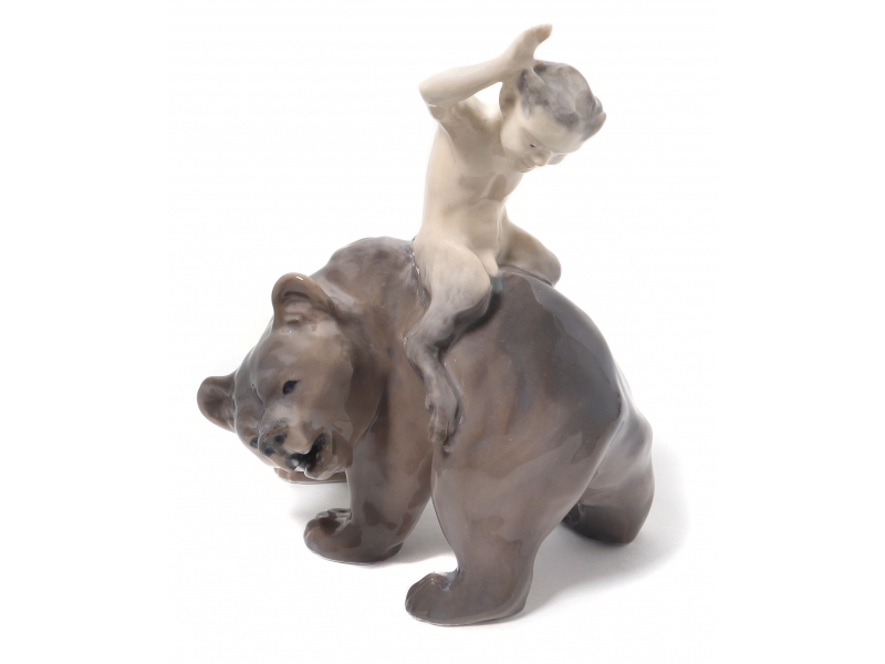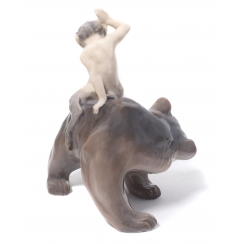 Статуэтка первого сорта. Без сколов, повреждений и без реставраций. =============================== Porcelain figurine "Faun backwards on bear". Hand-painted underglaze.