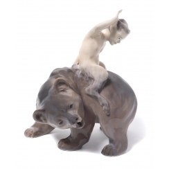 Фарфоровая фигура (статуэтка) "Фавн, погоняющий медведя". Ручная подглазурная роспись.