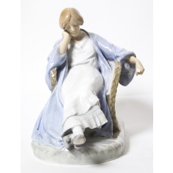 Статуэтка первого сорта. Без сколов, повреждений и без реставраций. ======================================= Porcelain figurine "Thoughtful woman in chair". Hand-painted underglaz.