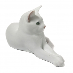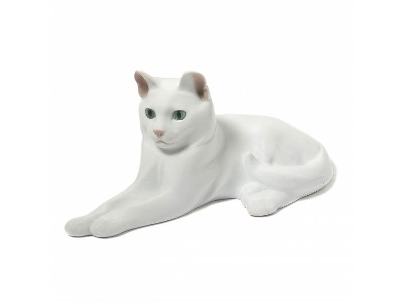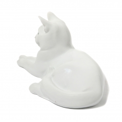 Фарфоровая фигура (статуэтка) "Лежащая белая кошка". Ручная подглазурная роспись.