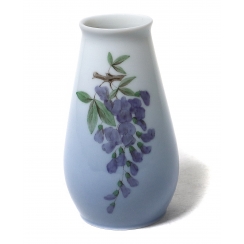 Фарфоровая ваза, декорированная цветущей веткой глицинии. Ручная подглазурная роспись.