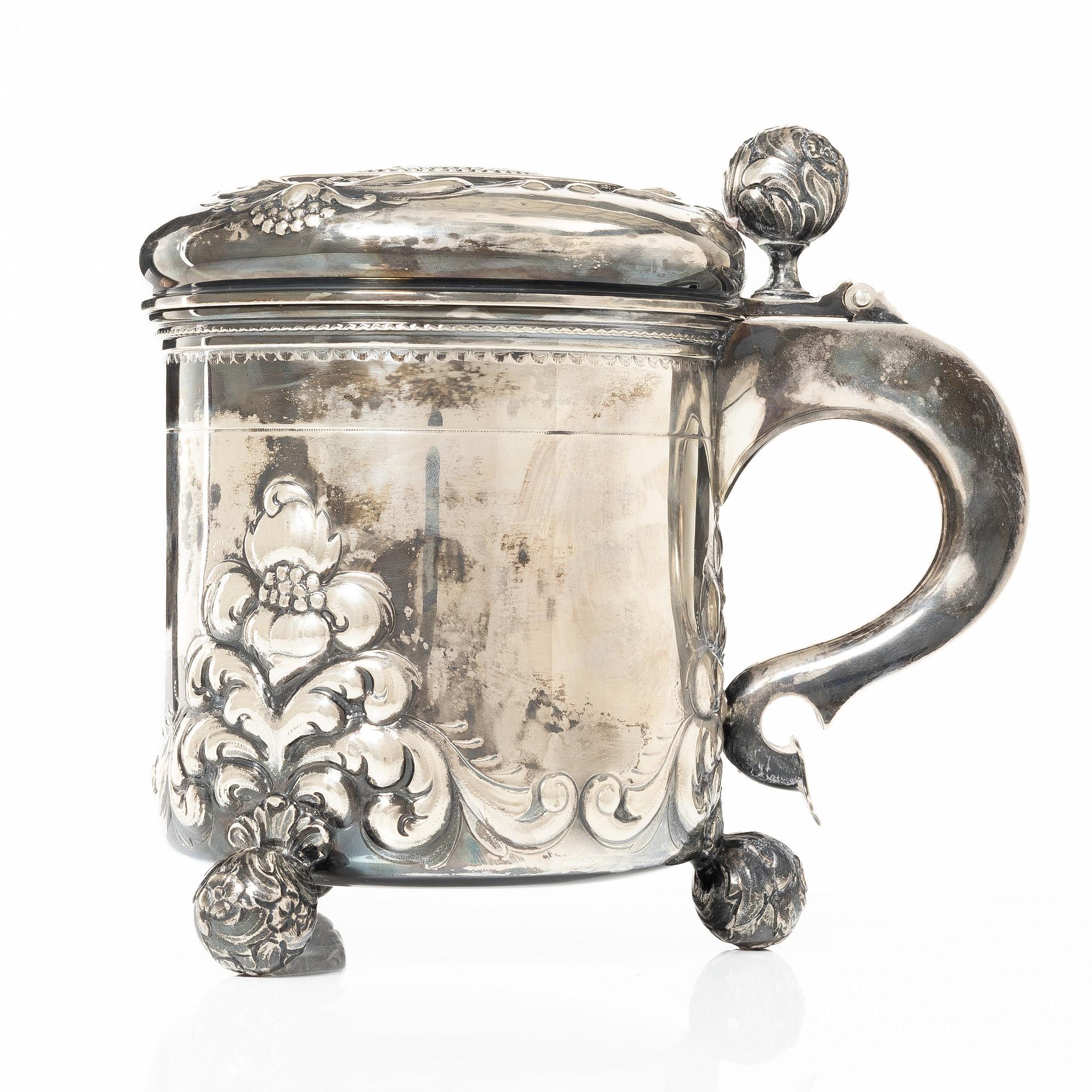 Кружка с откидной крышкой, 1027 гр, 830 пр, высота по верх крышки 19 см, диаметр верха 14,4 см