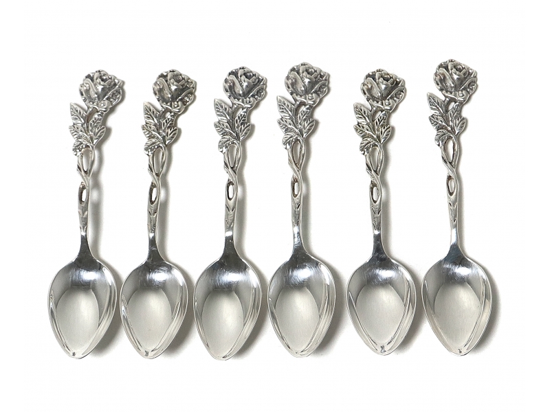 Серебряные кофейные ложки, 6 шт. Дизайн "Хильдесхаймская роза" (Rose of Hildesheim).