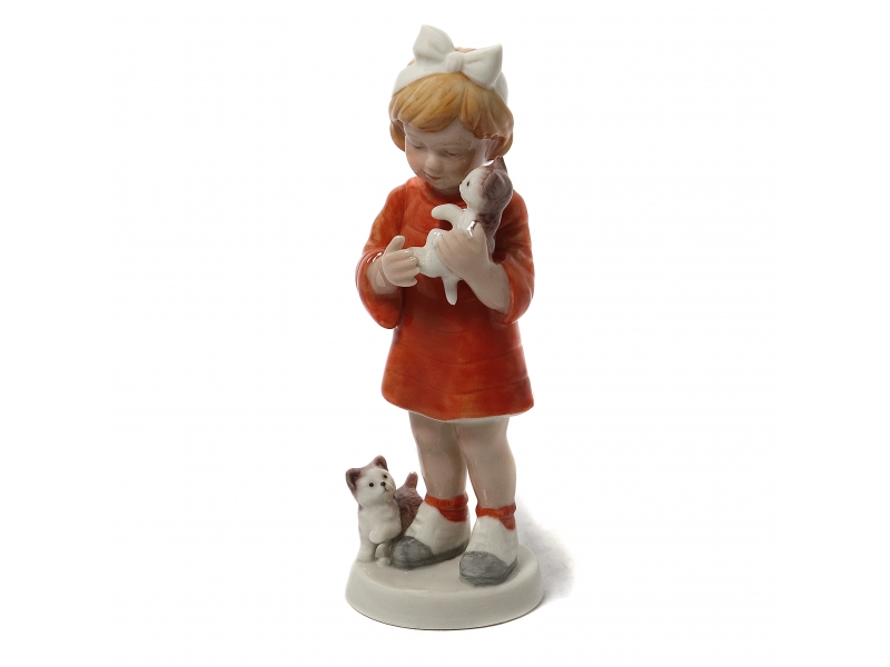 Годовая фарфоровая фигура (статуэтка) "Девочка с котятами" из серии "Мой лучший друг".