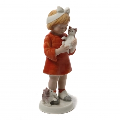 В серию входят фигурки: 2000 год, Девочка с котятами 2001 год, Мальчик с кроликом 2002 год, Девушка с волнистым попугайчиком 2003 год, Мальчик с поросенком 2004 год, Девушка с курицей ============================== Рorcelain figurine "Girl with kittens" from the series "My best friend".