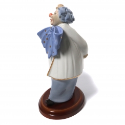 Фарфоровая фигура (статуэтка) "Клоун" на деревянной подставке. Ручная подглазурная роспись.