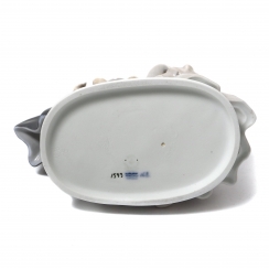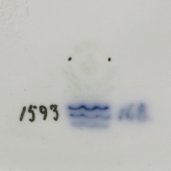 Дания, г. Копенгаген, Royal Copenhagen, 1923-1928 гг. Скульптор: Christian Thomsen (годы жизни 1860-1921, годы работы на фабрике: 1898-1920). Номер модели: 1593, производится с 1914 года. "168" - порядковый номер художника H. Henrichsen, расписавшего статуэтку, работал на фабрике с 1912 по 1923 год. Клеймо производителя.