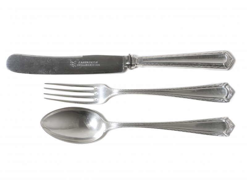 Total weight of solid silver items: 52 grams of silver 830 fineness. Total weight of the knife with silver handle and steel blade: 36 grams.