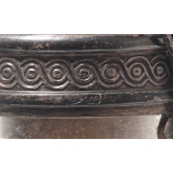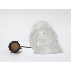 На изделии стоит клеймо Российской Федерации в виде усеченного с двух сторон овала с женской головой в кокошнике, повернутой вправо, и цифрой 925. =============================== Decanter. Crystal, sterling silver 925 fineness.