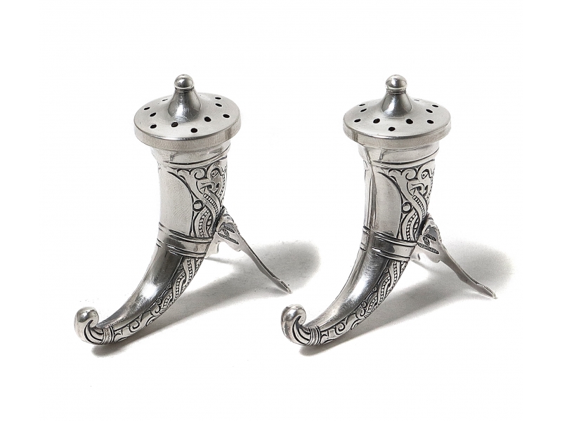 152869 - Серебряные солонка и перечница. НорвегияСеребряные солонка и перечница в виде ритонов.