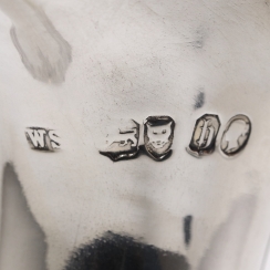 Maximum height: 35.5 cm, height of the nose: 31 cm, base diameter: 10.2 cm. Volume: 1600 ml. Weight: 839 grams of sterling silver 925 fineness.