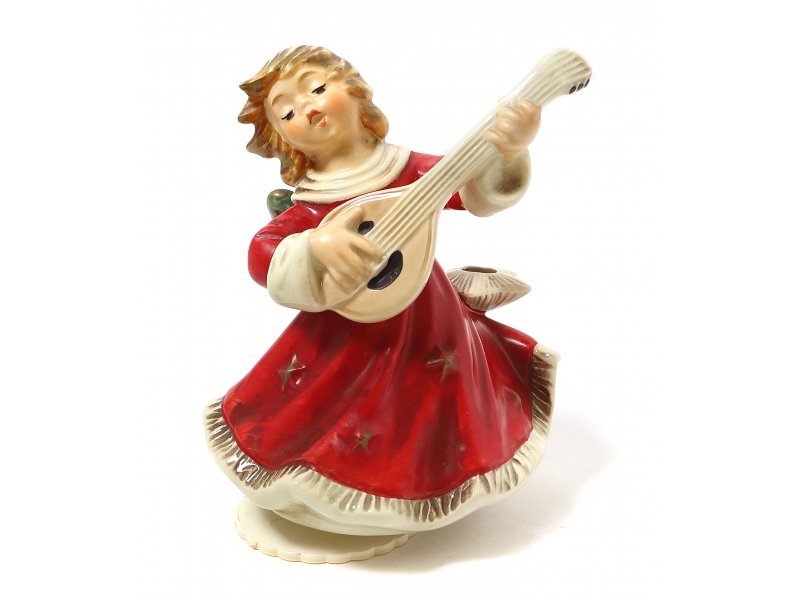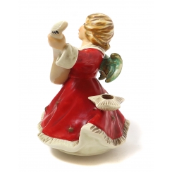 Музыкальный вращающийся фарфоровый подсвечник в виде фигуры ангела с мандолиной. Ручная роспись.