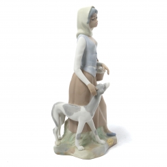 Фарфоровая фигура (статуэтка) "Девушка с собакой". Ручная подглазурная роспись.