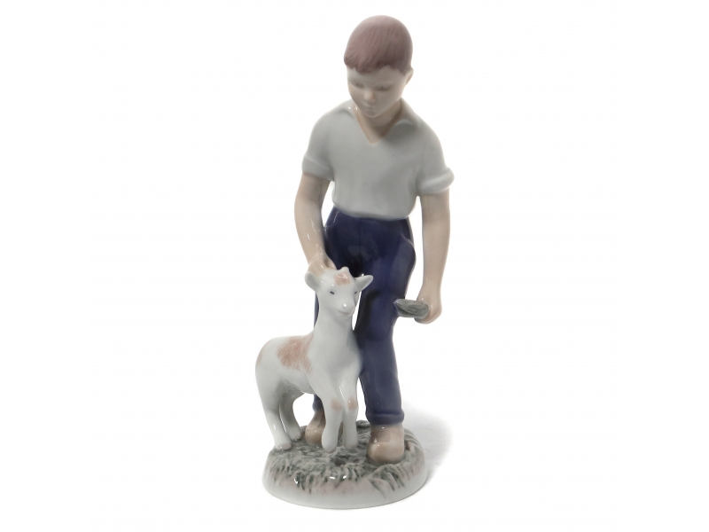 Фарфоровая фигура (статуэтка) "Мальчик с козленком". Ручная подглазурная роспись.