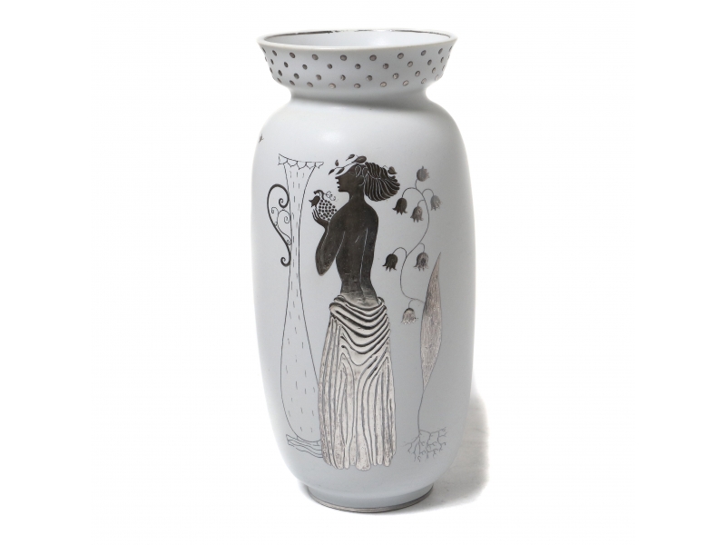 Потертости на верхнем серебряном ободке. ============================ Ceramic vase from the series "Grazia". Decorated with interior motion picture made of silver.