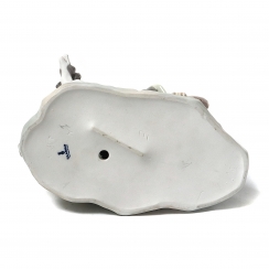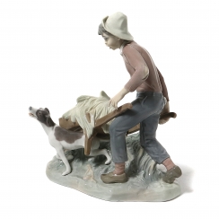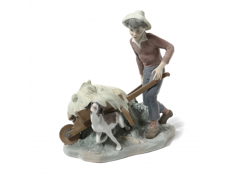 Фарфоровая фигура (статуэтка) "Садовник в беде" (Мальчик с тележкой и собака). Ручная подглазурная роспись.