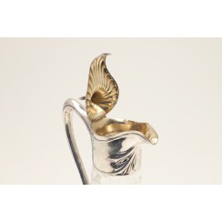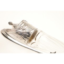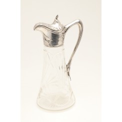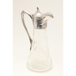 Кувшин в стиле модеон. Стекло, серебро 899 пробы. Германия. Высота по хватку на крышке 28 см, диаметр основания 12,3 см