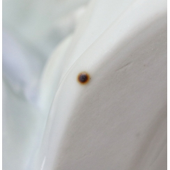 Статуэтка третьего сорта. Не обнаружил на статуэтке никаких очевидных производственных дефектов, из-за которых фигуре присвоили третий сорт. На фигуре несколько темных точек, не влияющих на ее эстетические свойства. Hа задней левой лапе собаки - след от лопнувшего пузырька глазури.