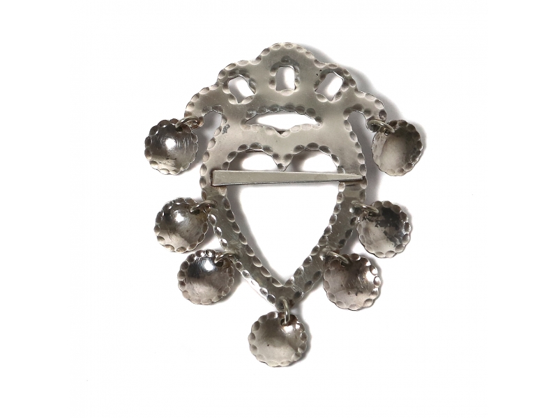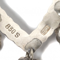 Maximum length including pendant: 7 cm, width: 5.5 cm. Weight: 11 grams of silver 830 fineness.