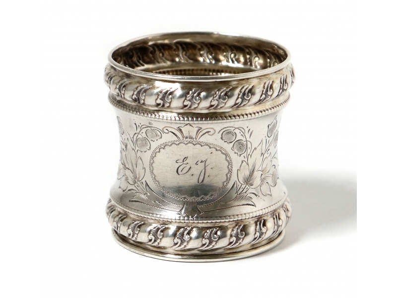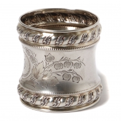 Серебряное кольцо для салфеток, декорированное растительным орнаментом.