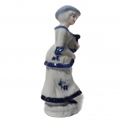 Небольшой производственный дефект в виде двух непрокрашенных пятнышек на подоле. Без сколов и реставраций. ============================= Porcelain figurine "Girl with a harp". Hand-painted underglaze.