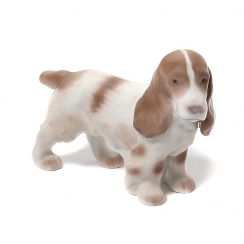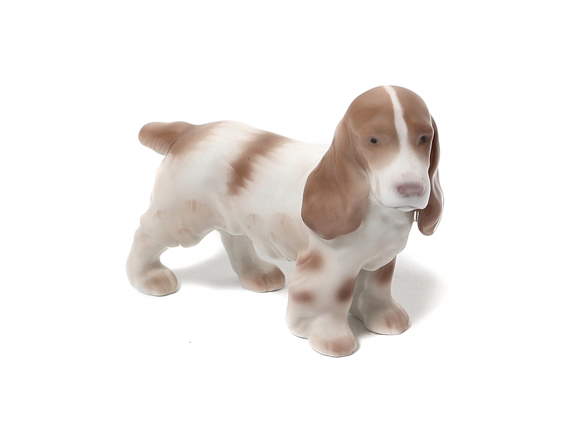 Фигуру продолжали производить также после объединения фабрик Royal Copenhagen и Bing & Grondahl (1985-1989) под брендом Royal Copenhagen, с новым номером модели: 450. =============================== Porcelain figurine "Cocker Spaniel". Hand-painted underglaze.