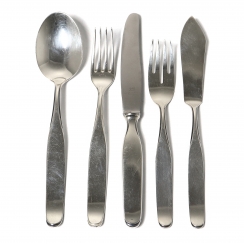 Dinner spoons, 12 pcs, length: 20.5 cm. Dinner forks, 12 pcs, length: 19 cm. Dinner knives, 12 pcs, length: 22 cm. Fish forks, 12 pcs, length: 18 cm. Fish knives, 12 pcs, length: 21 cm.