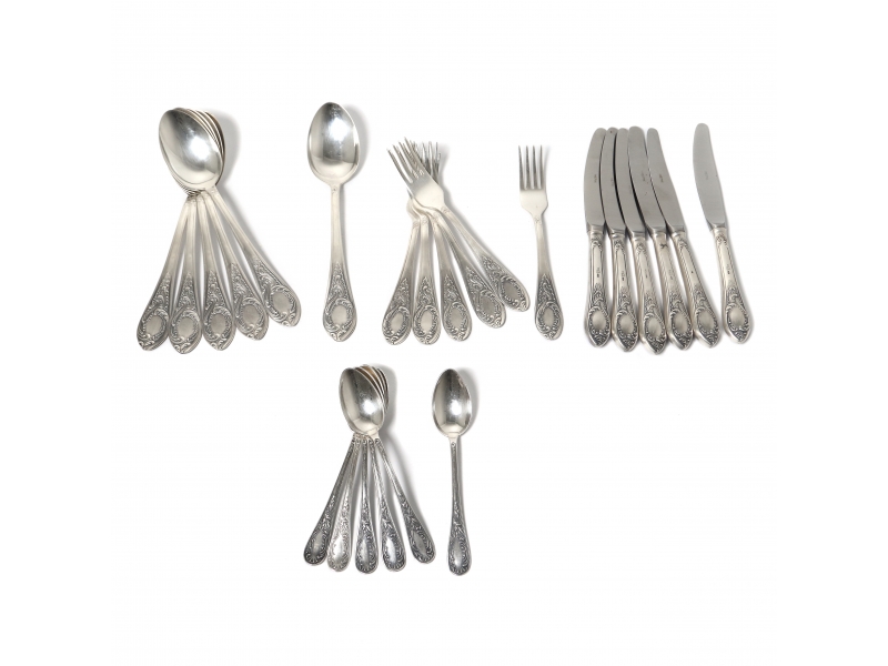 Набор серебряных столовых приборов на 6 персон, 24 предмета.