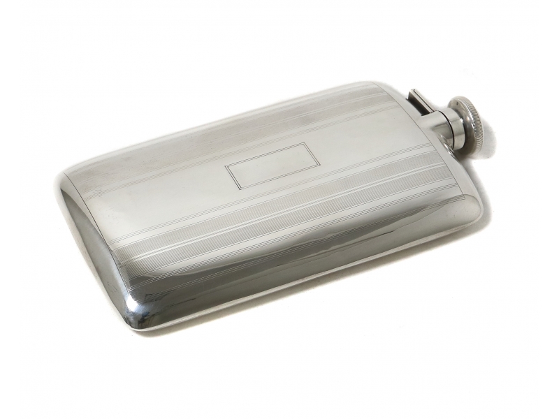 Максимальные размеры: 18 х 11 х 1,5 см. Объём: 250 мл. Вес: 209 граммов серебра 925 пробы. ============================= Sterling silver pocket hip flask (whiskey bottle).