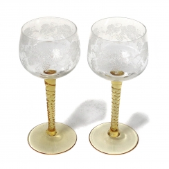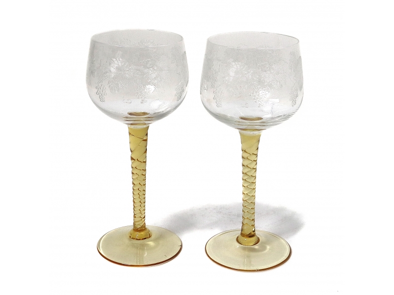 Two wine glasses, height: 17.3 cm, base diameter: 7 cm, top diameter: 6.7 cm. Volume: 150 ml.