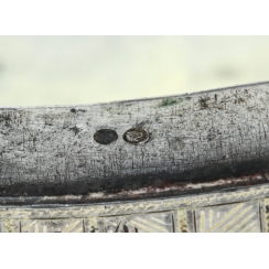 "Двуглавый орел" - клеймо г. Москвы, 18 век. "Лебедь" в овале - французское клеймо для ввозных изделий из серебра не ниже 750 пробы. ================================= Round box. Silver, gilding, niello.