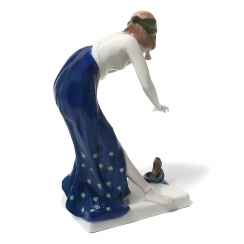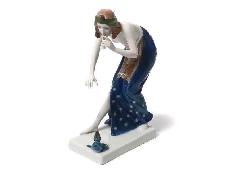 Фарфоровая фигура (статуэтка) "Заклинательница змей". Арт деко. Ручная подглазурная роспись.