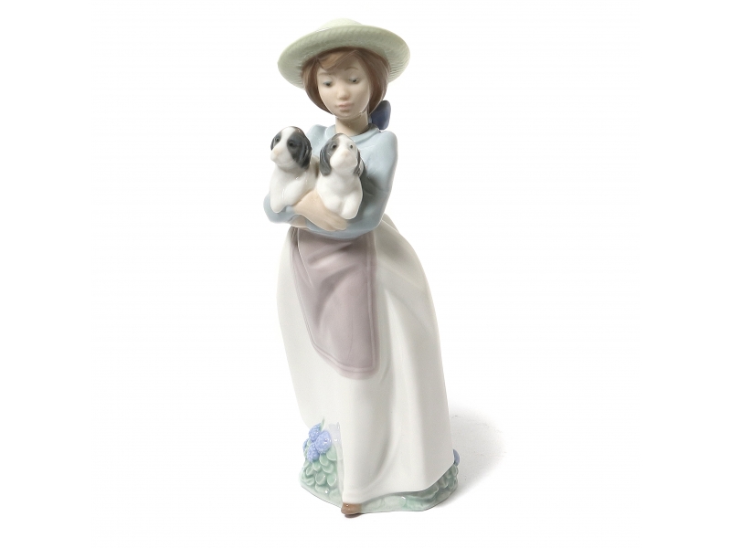 Без сколов, повреждений и без реставраций. ================================ Porcelain figurine "Girl with two puppies" (Puppy Walk). Hand-painted underglaze.