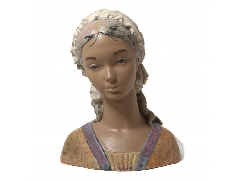 Большая керамическая фигура - бюст девушки, высота 33,5 см, основание 27,5 х 15,2 см, Испания, Lladro