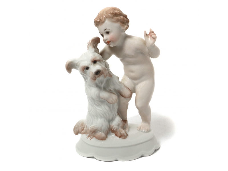198360 - Мальчик с собакой, высота 14,5 см, основание 8,7 х 6,3 см, Германия, Rosenthal |